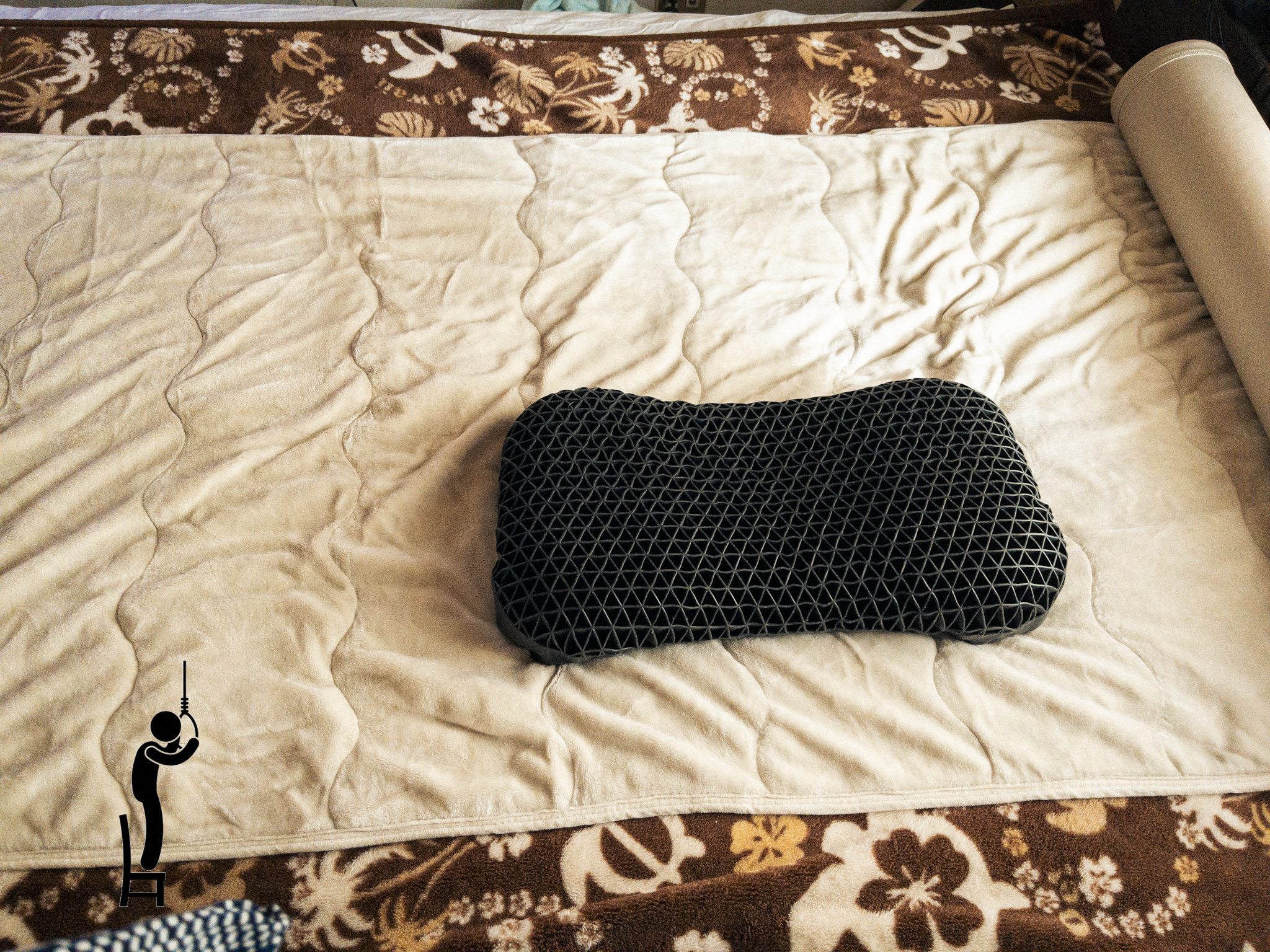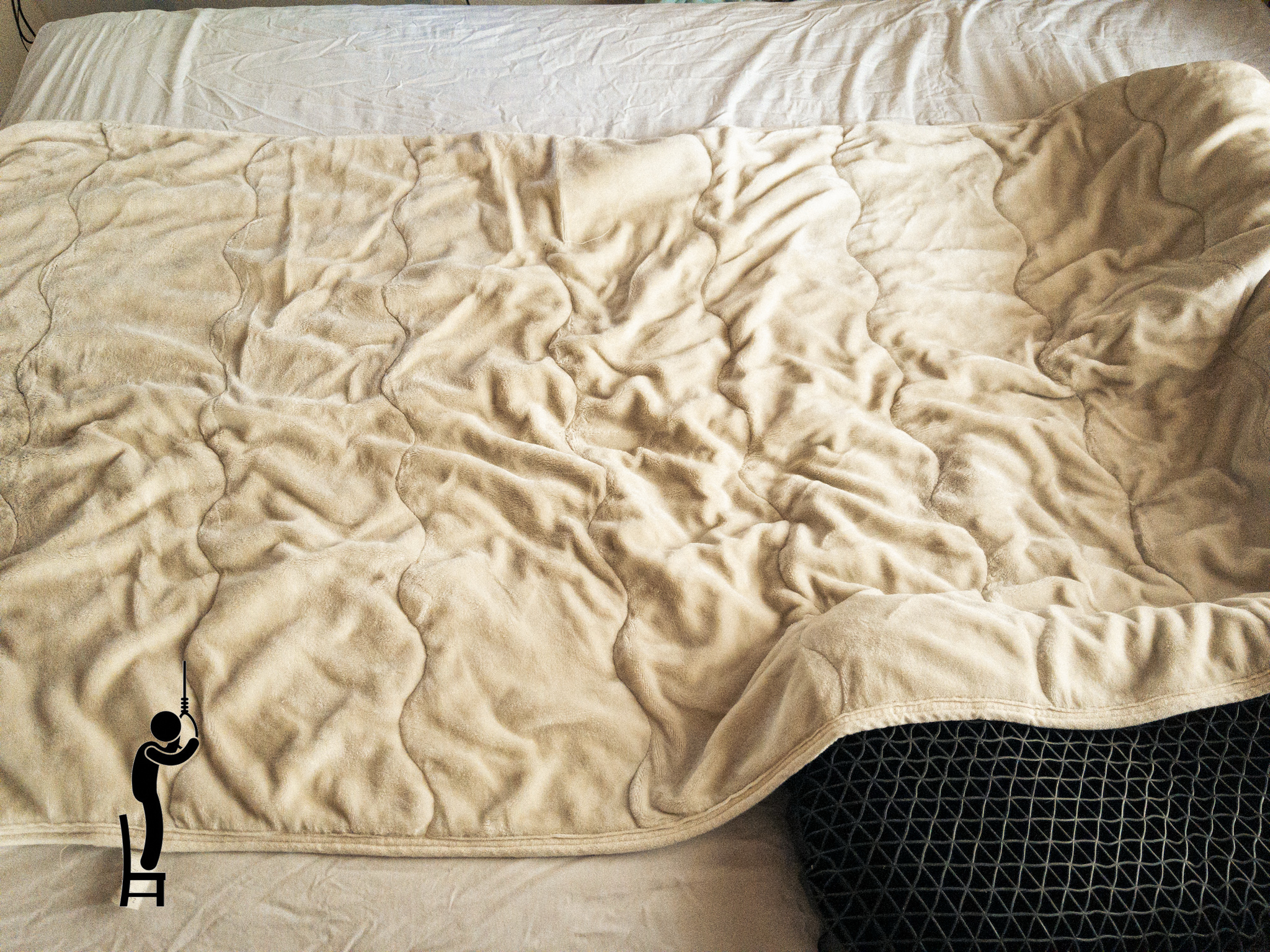 これでは寝返りなどを打った時に敷きパッドからはみ出ると冷やっとすることになるので、毛布を敷くことに。