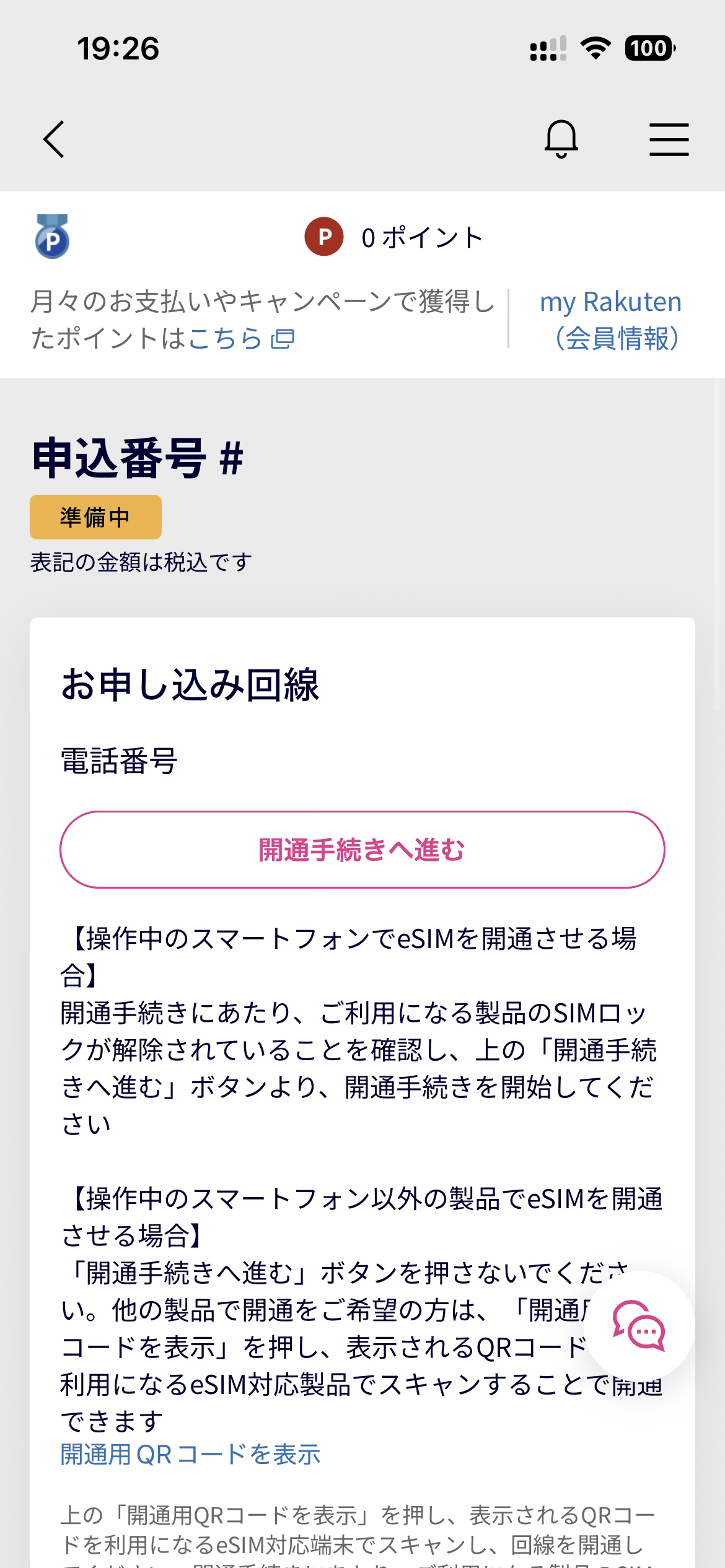 楽天モバイルアプリからesim再発行を選び開通手続きをやり直してみます。