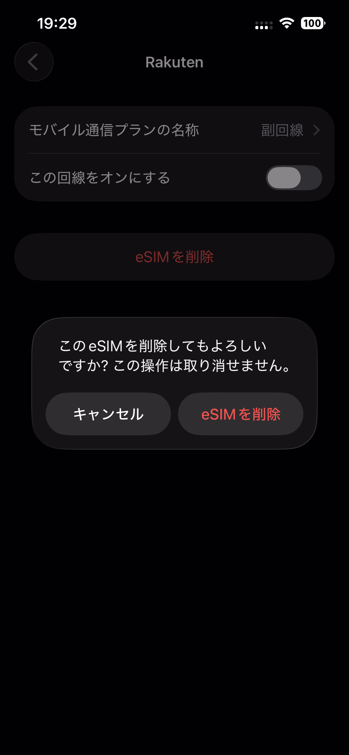 今はもう解約した楽天モバイルのesimが残っていたので削除しました。