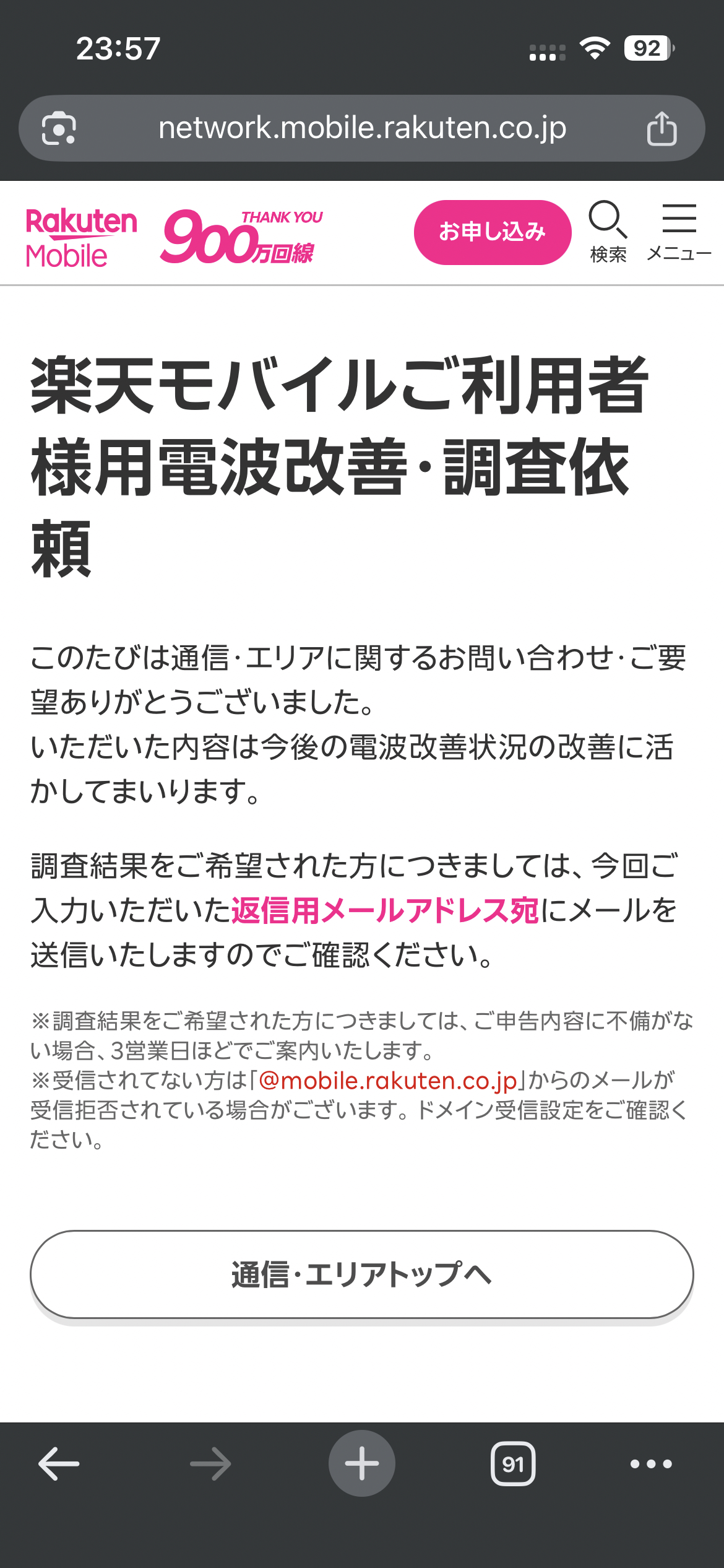 こちらでできることはやり切ったと思うので、楽天モバイル側に委ねることにしました。