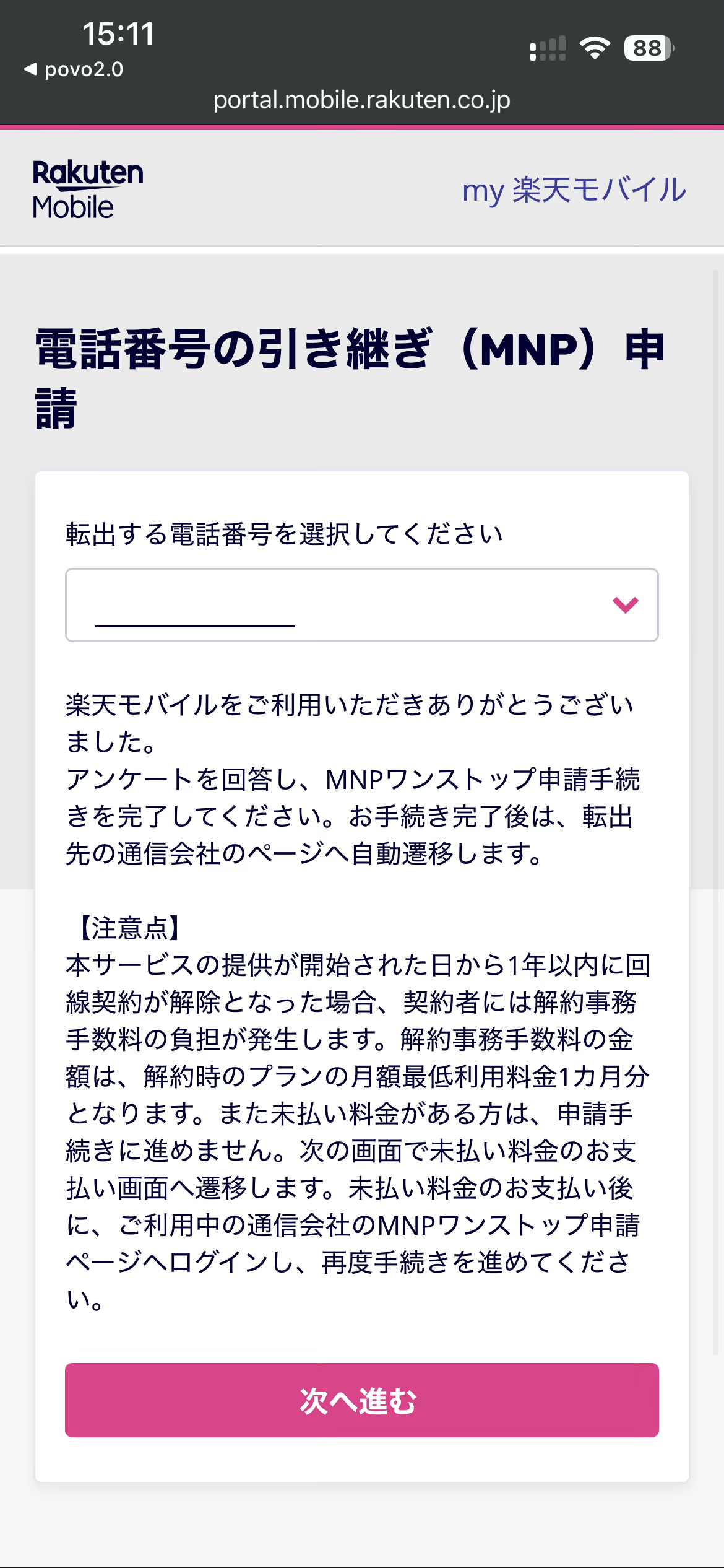 これまでメインで使っていた楽天モバイルからpovoにmnp転入します。