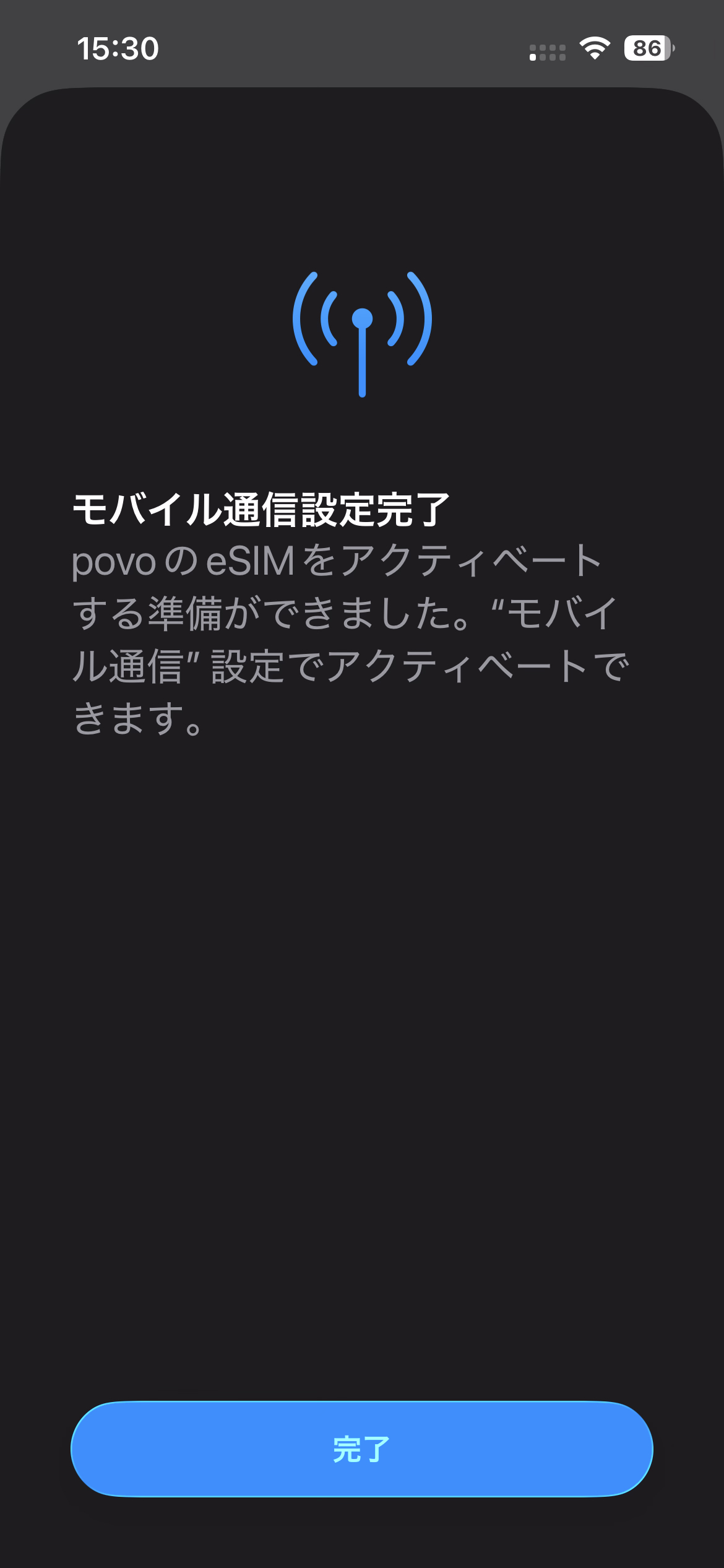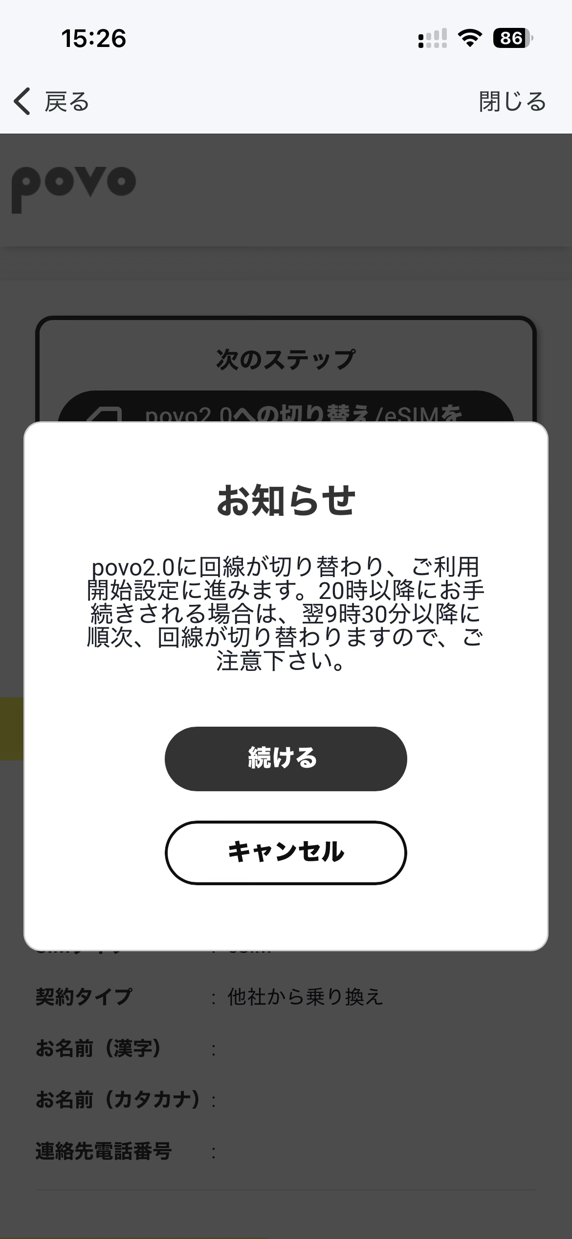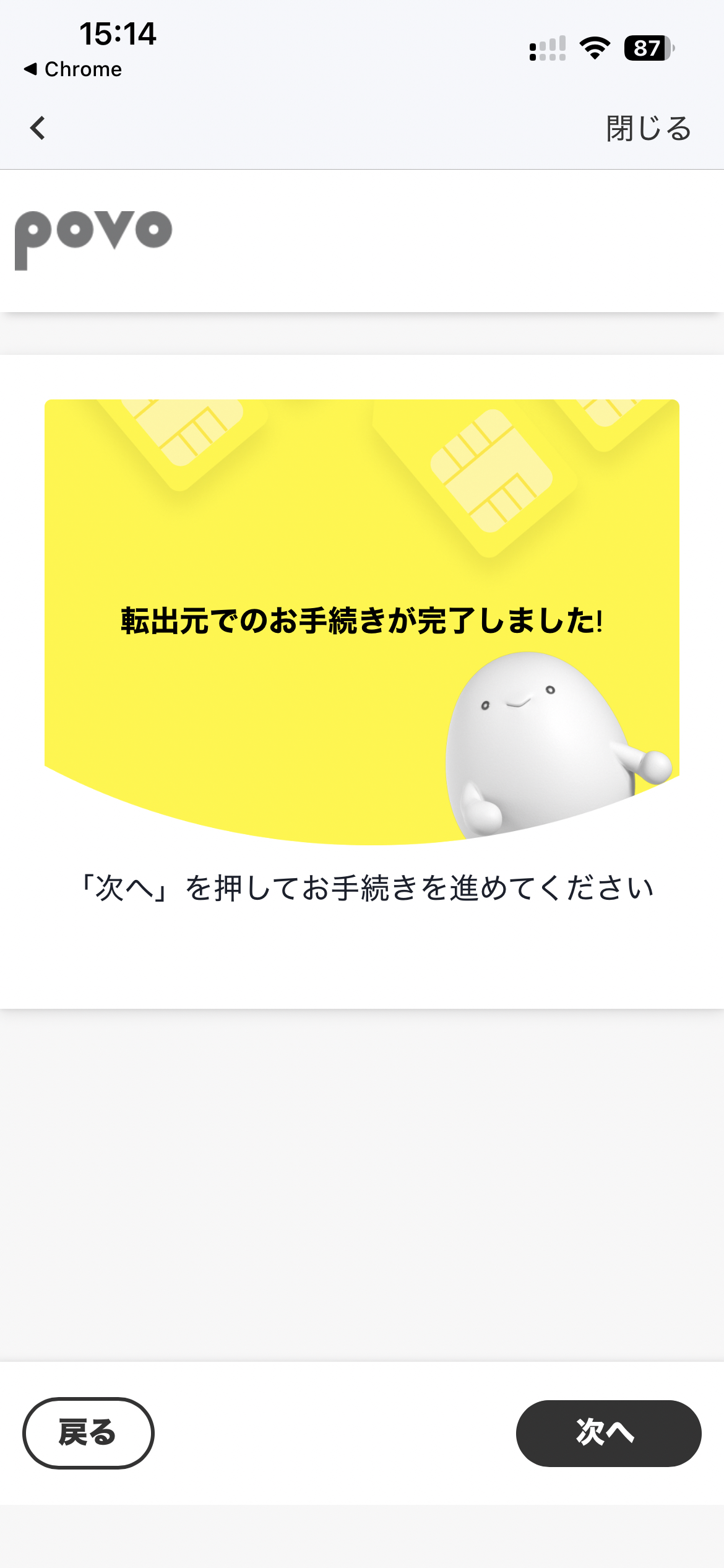 10分ちょっとでpovoの本人確認が済んでmnp転入へ。