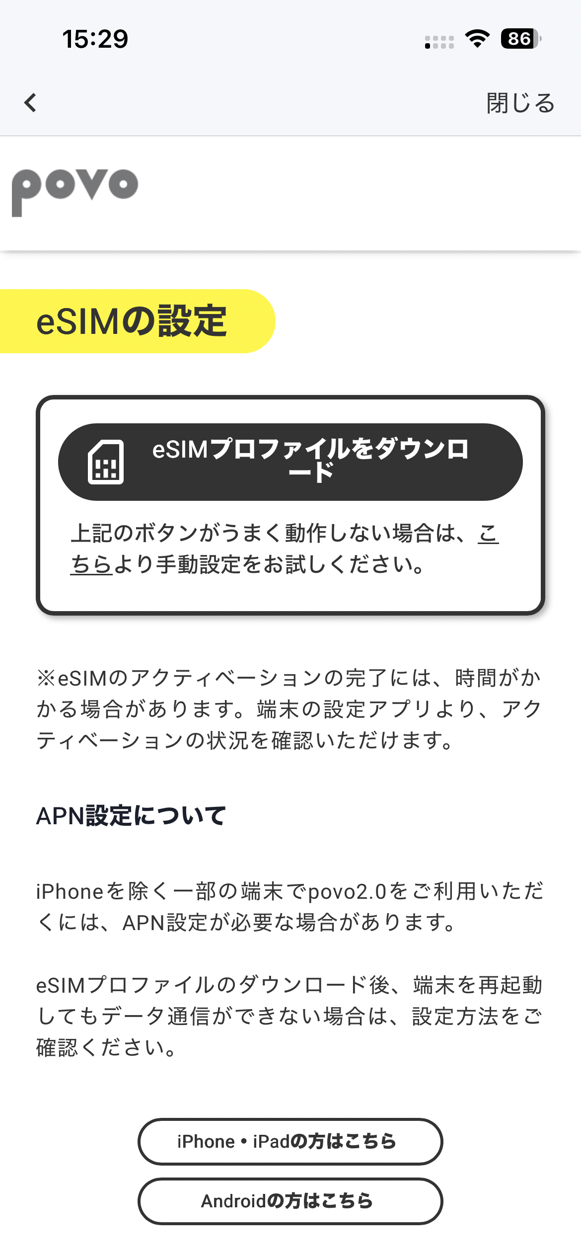 2回線とも楽天モバイルではいざという時に役に立たないので、これまでメインで使っていた楽天モバイル回線をpovoに乗り換えました。