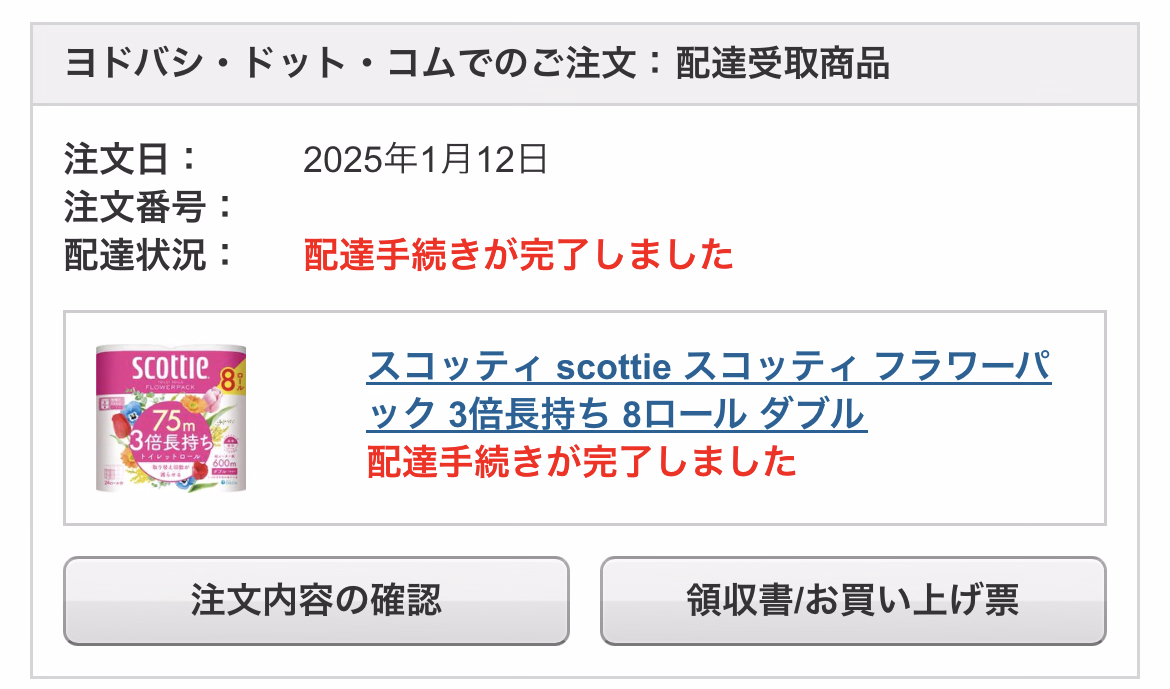 Amazonやヨドバシドットコムの購入履歴を見てみたら、今年トイレットペーパーを買ったのは3回目でした。