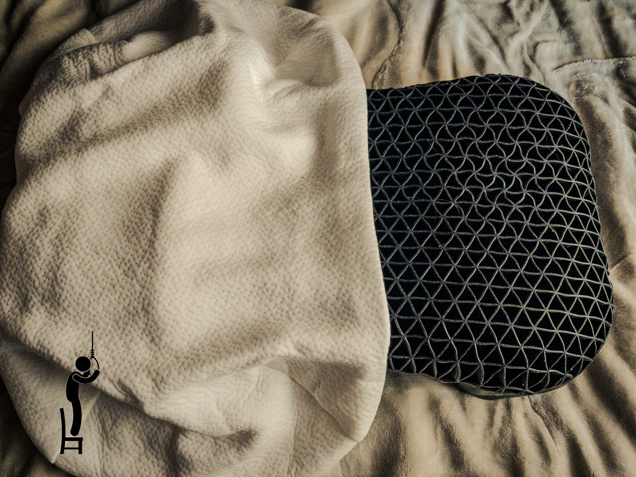ヒツジのいらない枕(極柔)は大きいので無理矢理詰め込む感じになって、枕の端っこで寝たりするとその感触があってやはり専用枕カバーでないとダメだなと。