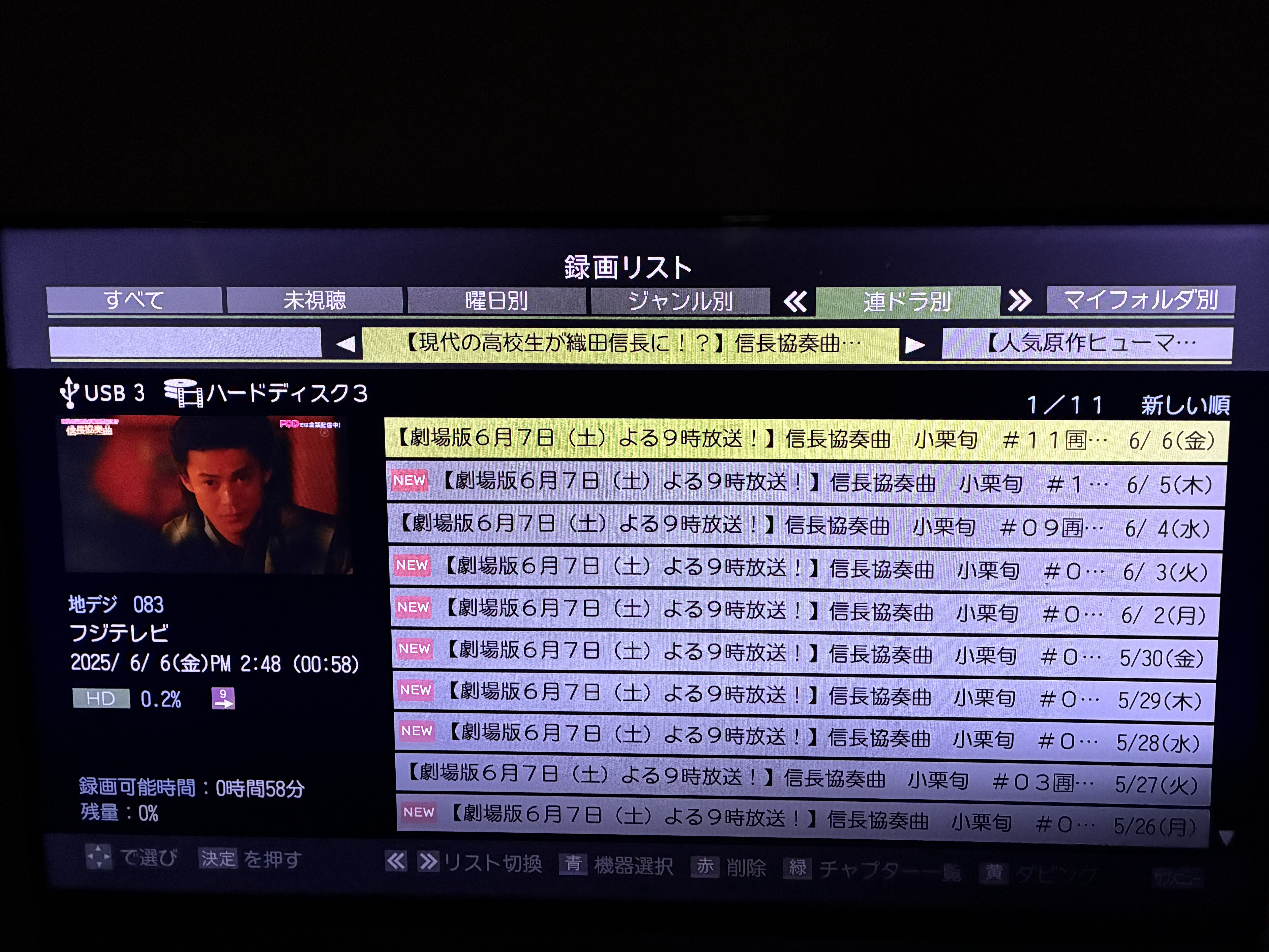 現在Abemaで配信中なのでテレビに繋いだHDDからは断捨離します。