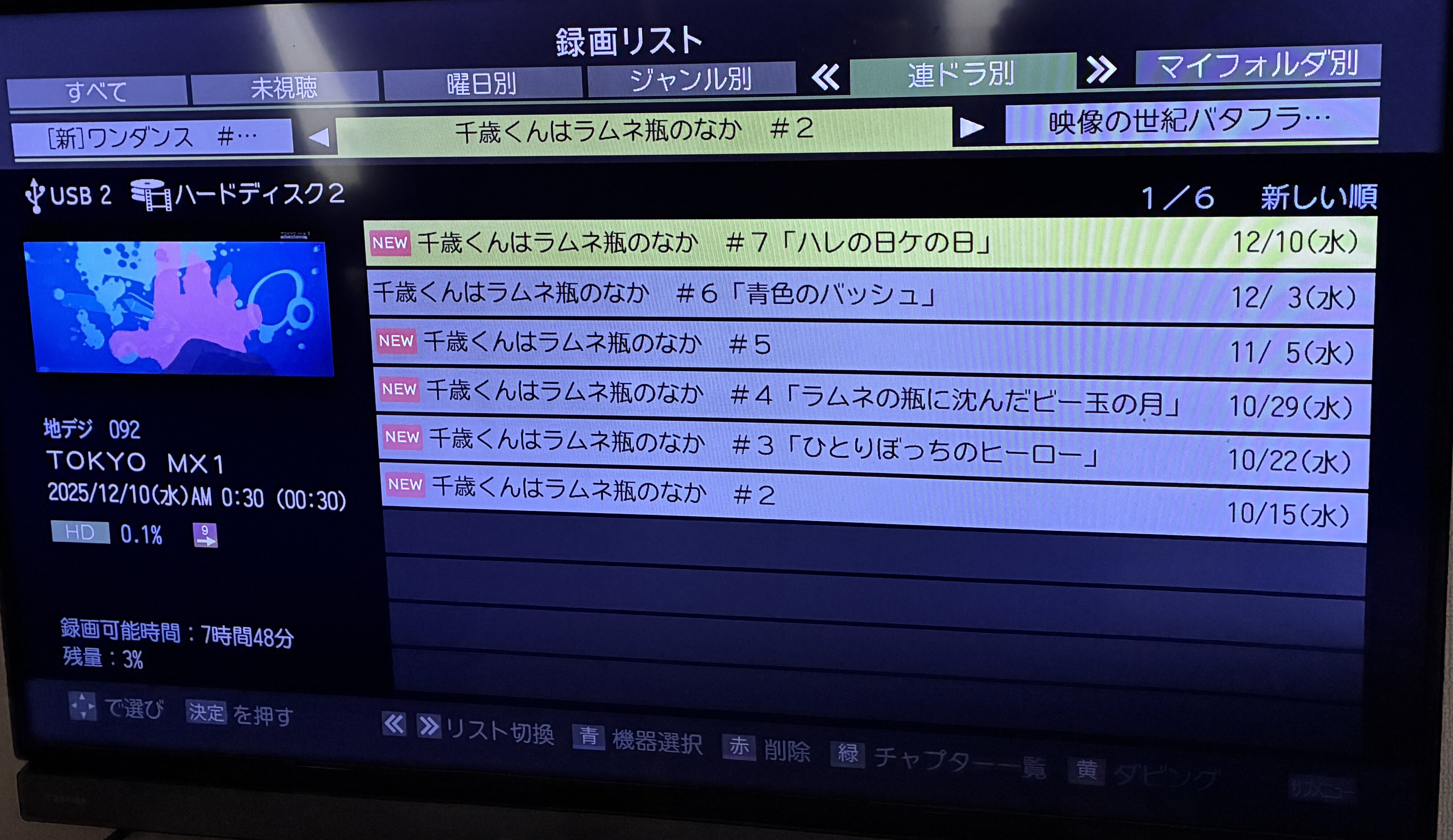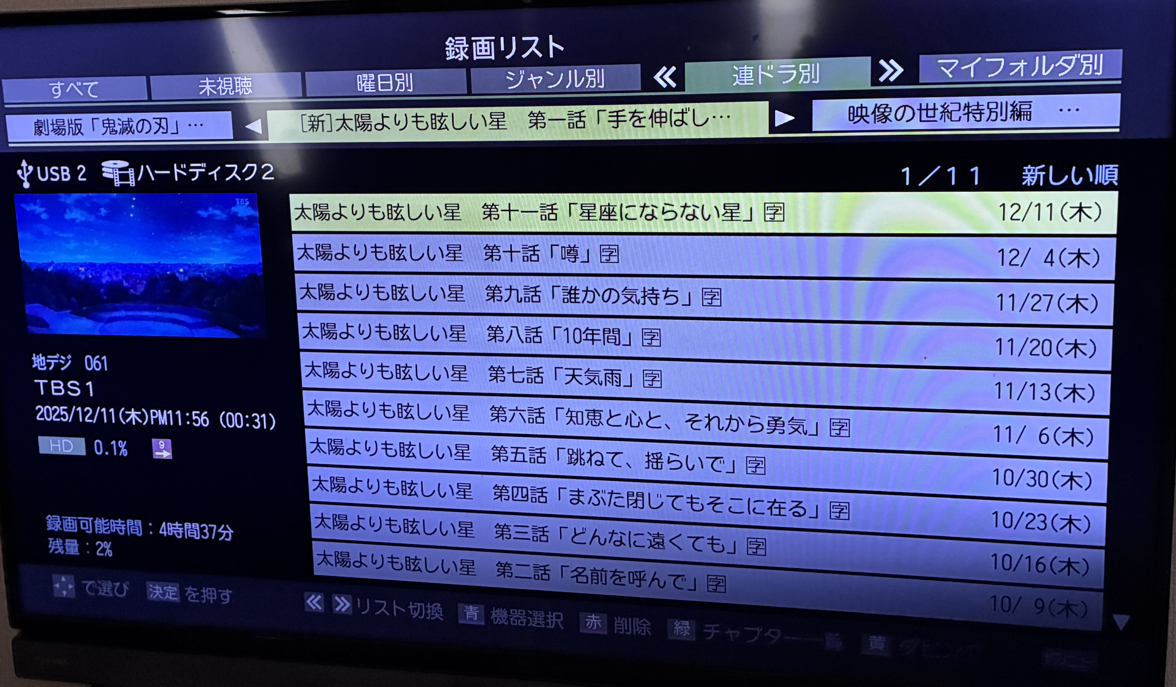 2台ともHDD残量は5時間もなかったので、これからクリスマス、年末年始と録画する出番が増えそうですしいらない番組を断捨離することにしました。