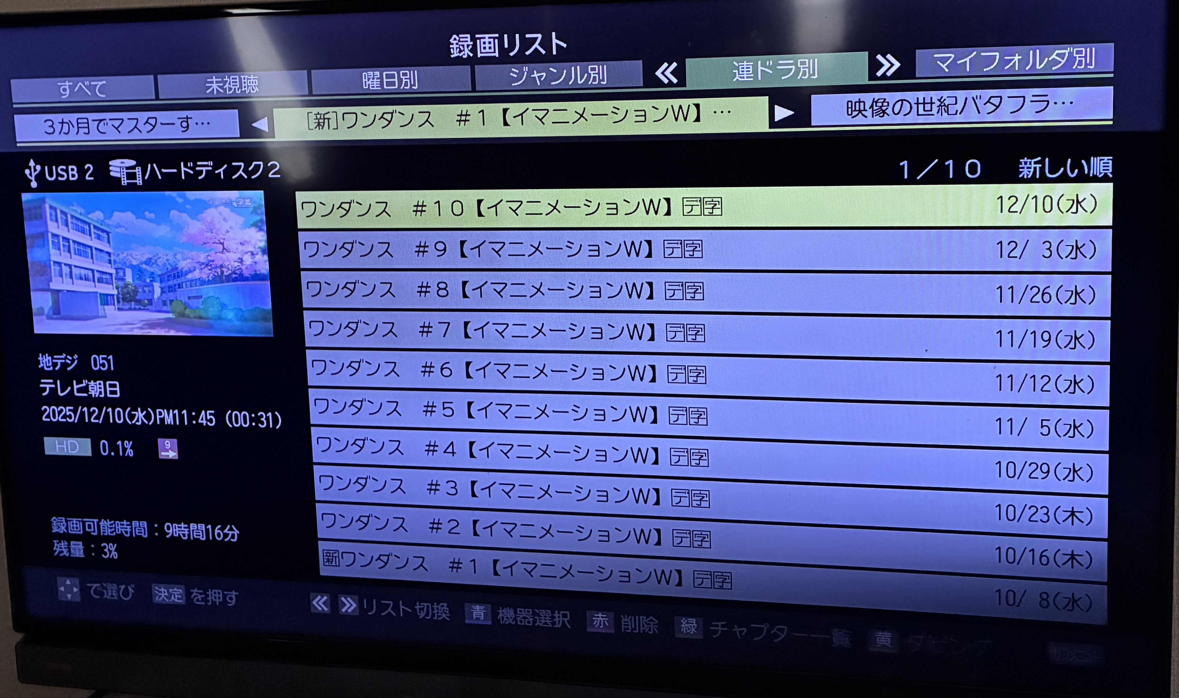 そろそろ1つのクールが終わるので、テレビに繋いだHDDからシリーズをまとめて断捨離することにしました。