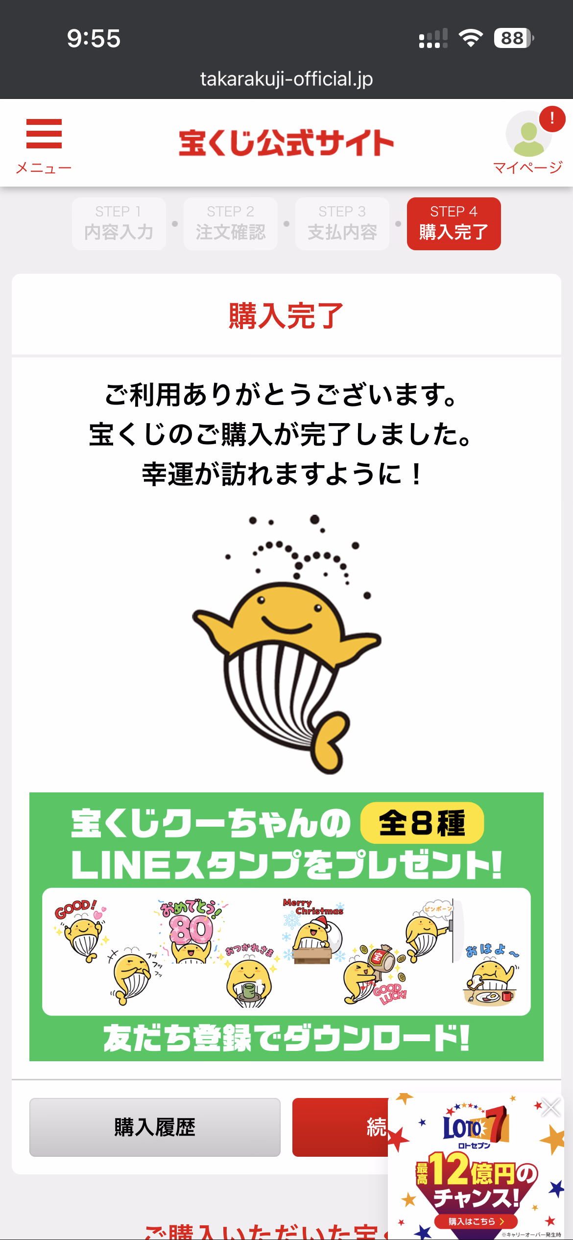 いつもは販売開始後すぐに購入しているんですが、全然当たらなそうな番号を割り振られるので数日おいてから買いました。