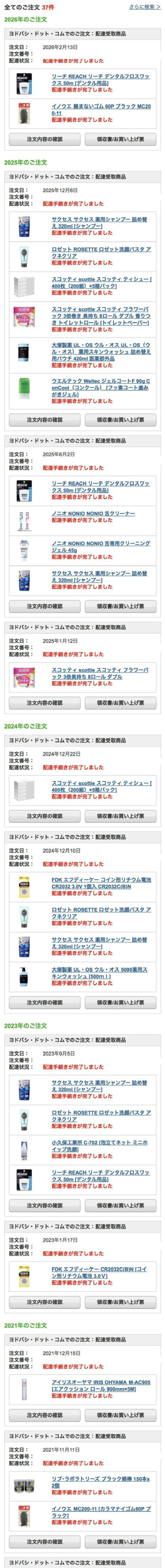 ヘアゴムがなくなりそうだったのでヨドバシドットコムで注文したんですが、最後に買ったのはいつだったか注文履歴を見たら4年以上前でした。