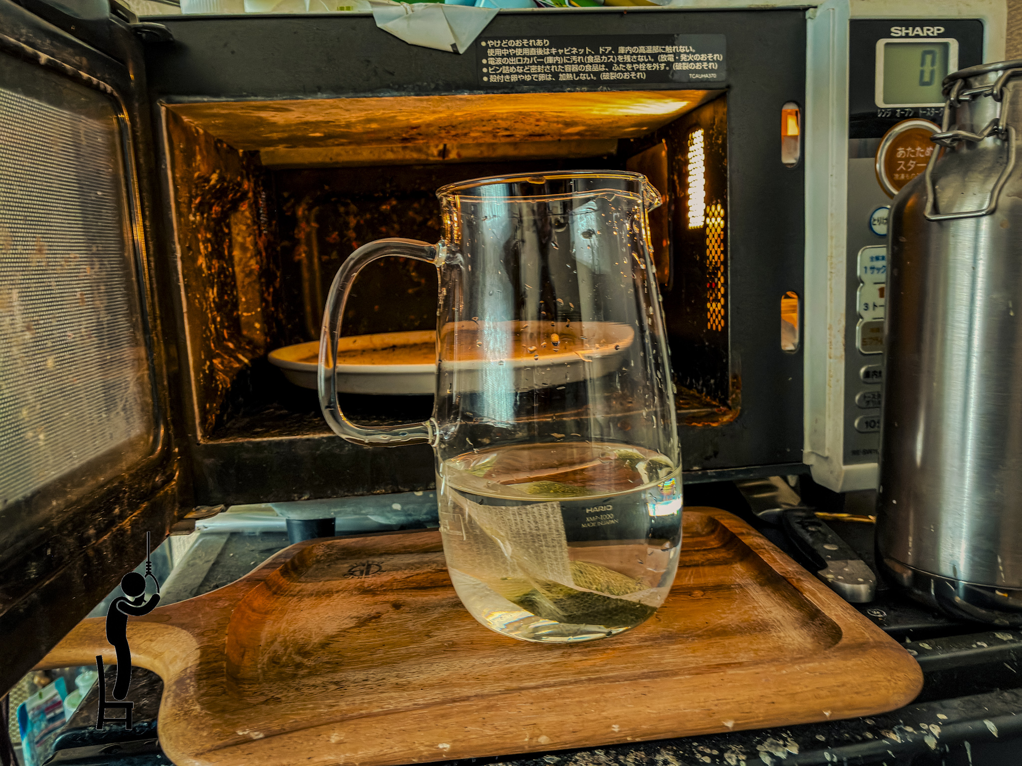 説明書によると、ティーパックと水を入れたポットを電子レンジで温めて麦茶を入れられるようです。