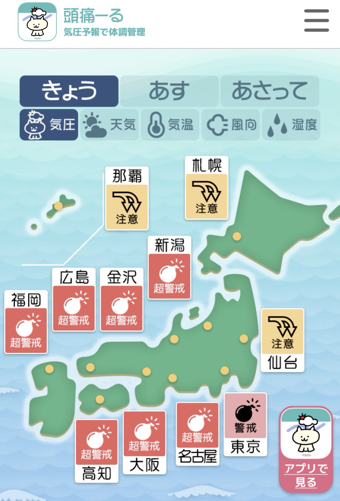 ここのところ具合悪いなと思ったら天気予報で低気圧となっていることが多いです。