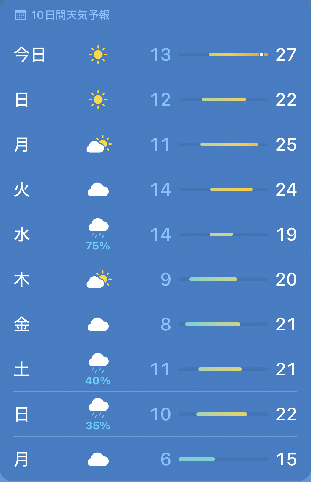 本日の最高気温は27℃です。