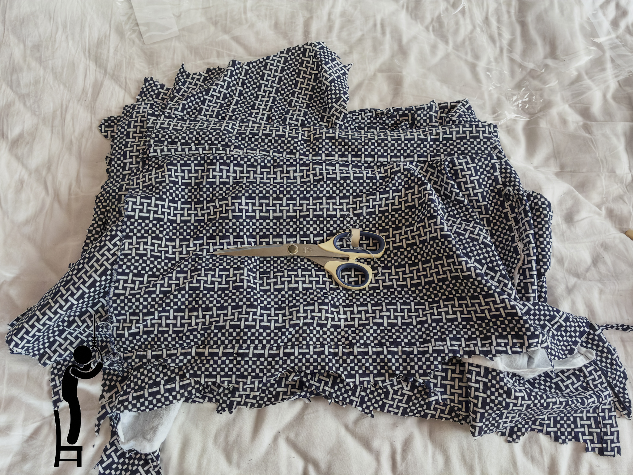 もうこれだけ着倒せば十分だろうと裁ち鋏で小さく切ってやりました。
